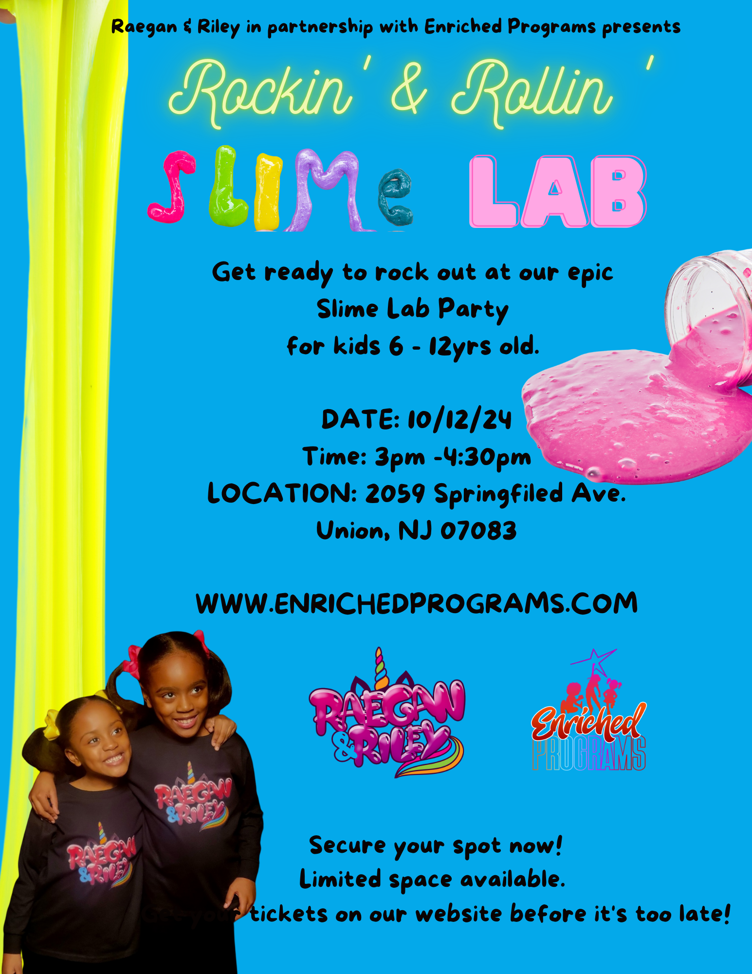 Get ready for a gooey, squishy, and super fun time at our Slime Lab Party, hosted by the dymanic duo Raegan and Riley!